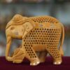 Wood Carving Undercut Jali Work Elephant Statue Beautiful Decorative Showpiece Figurine for Home Decor & Gift Purpose